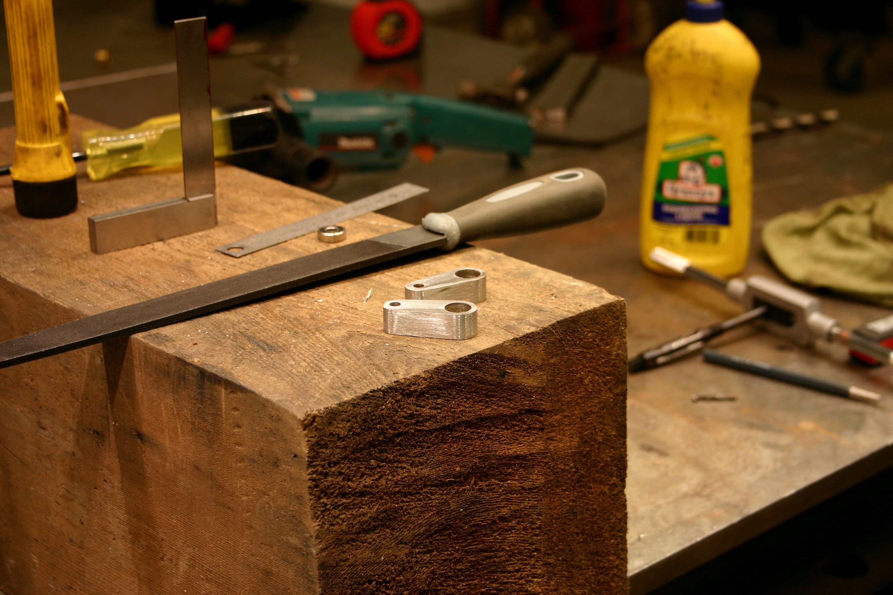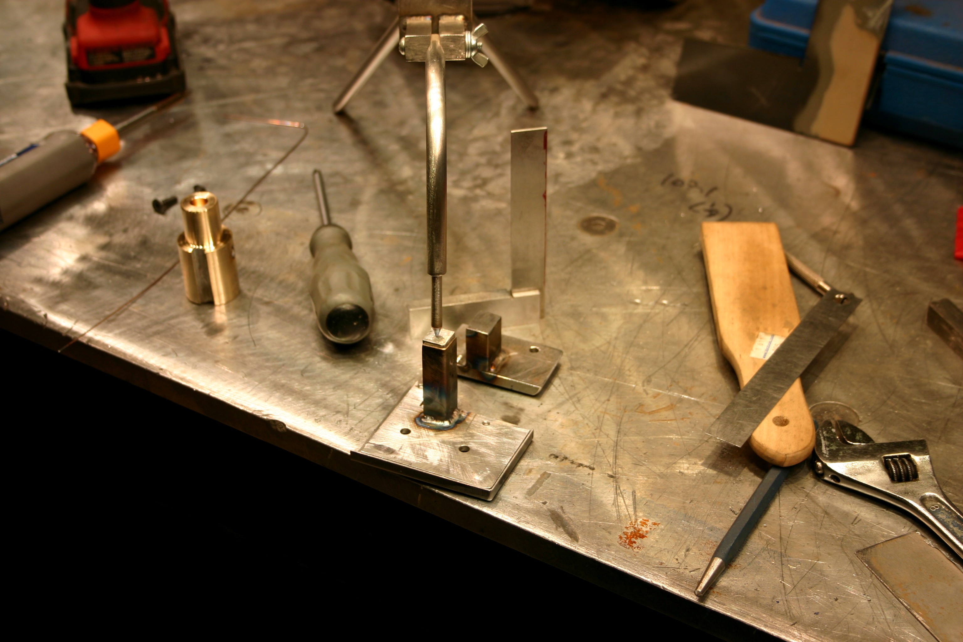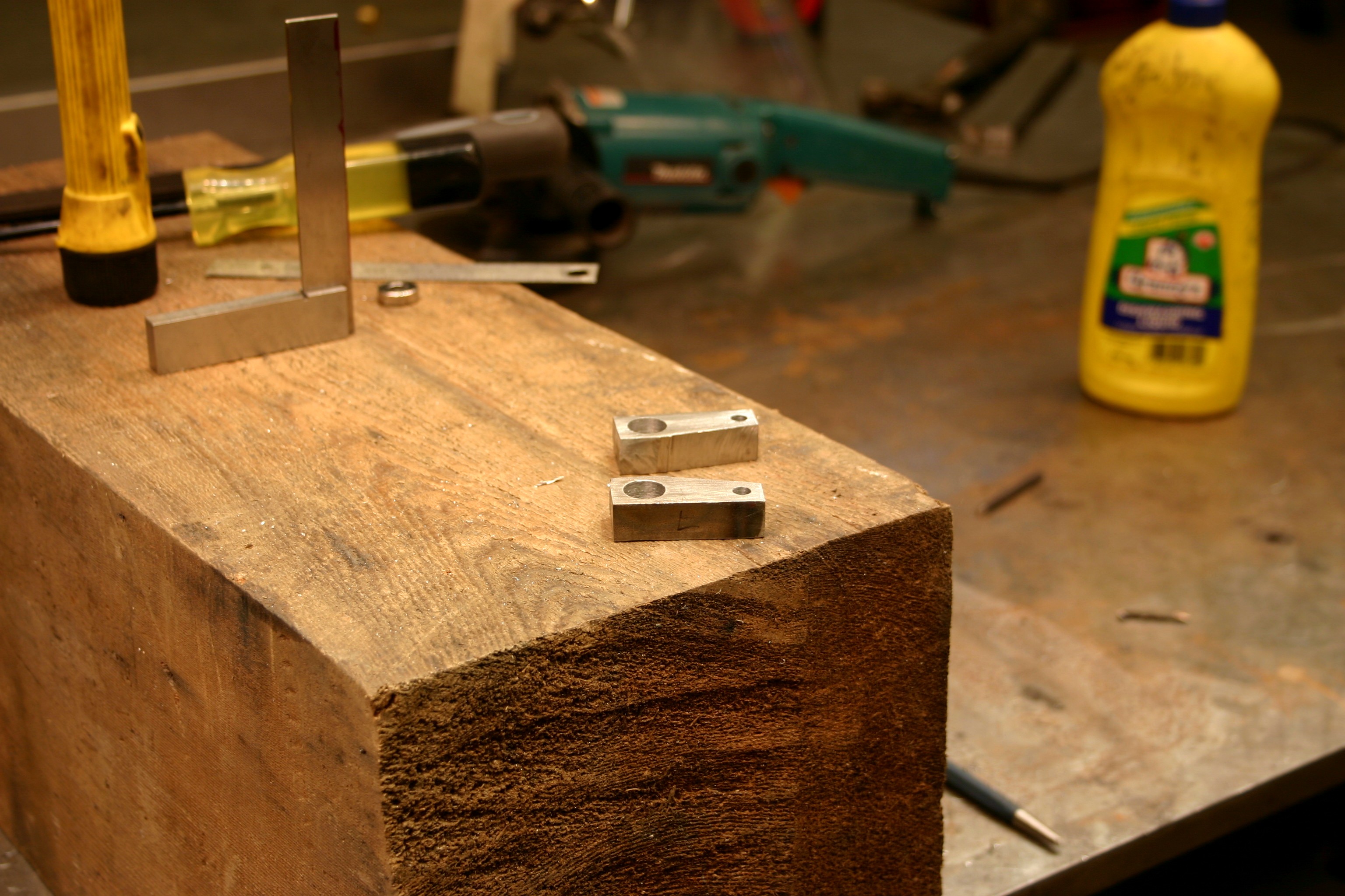 These next 2 pictures show the inside of the track end plate. Here I have fitted a small square of steel to be welded. The pointy metal finger thing is a weighted tool that holds things in place when my other 2 hands are welding.