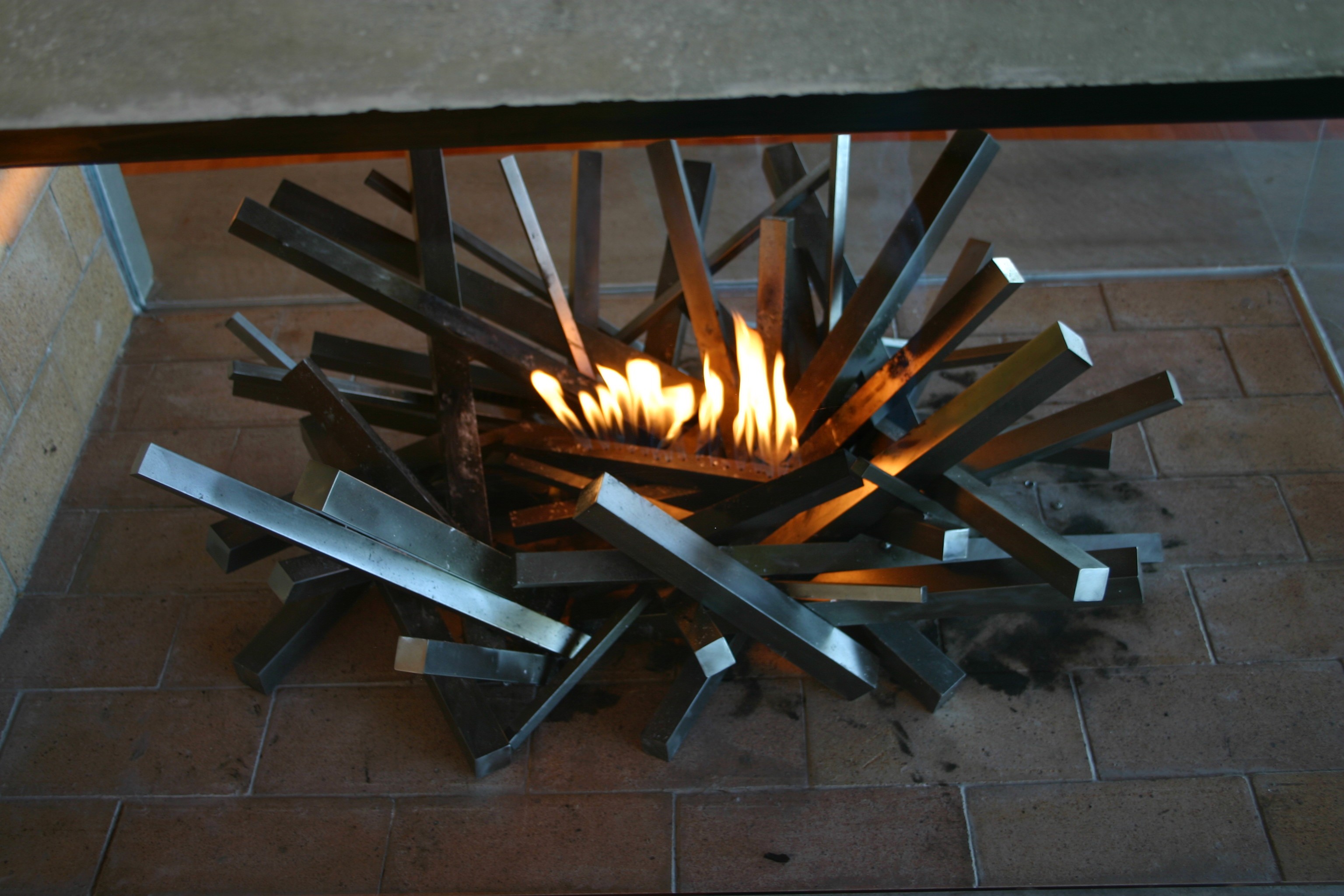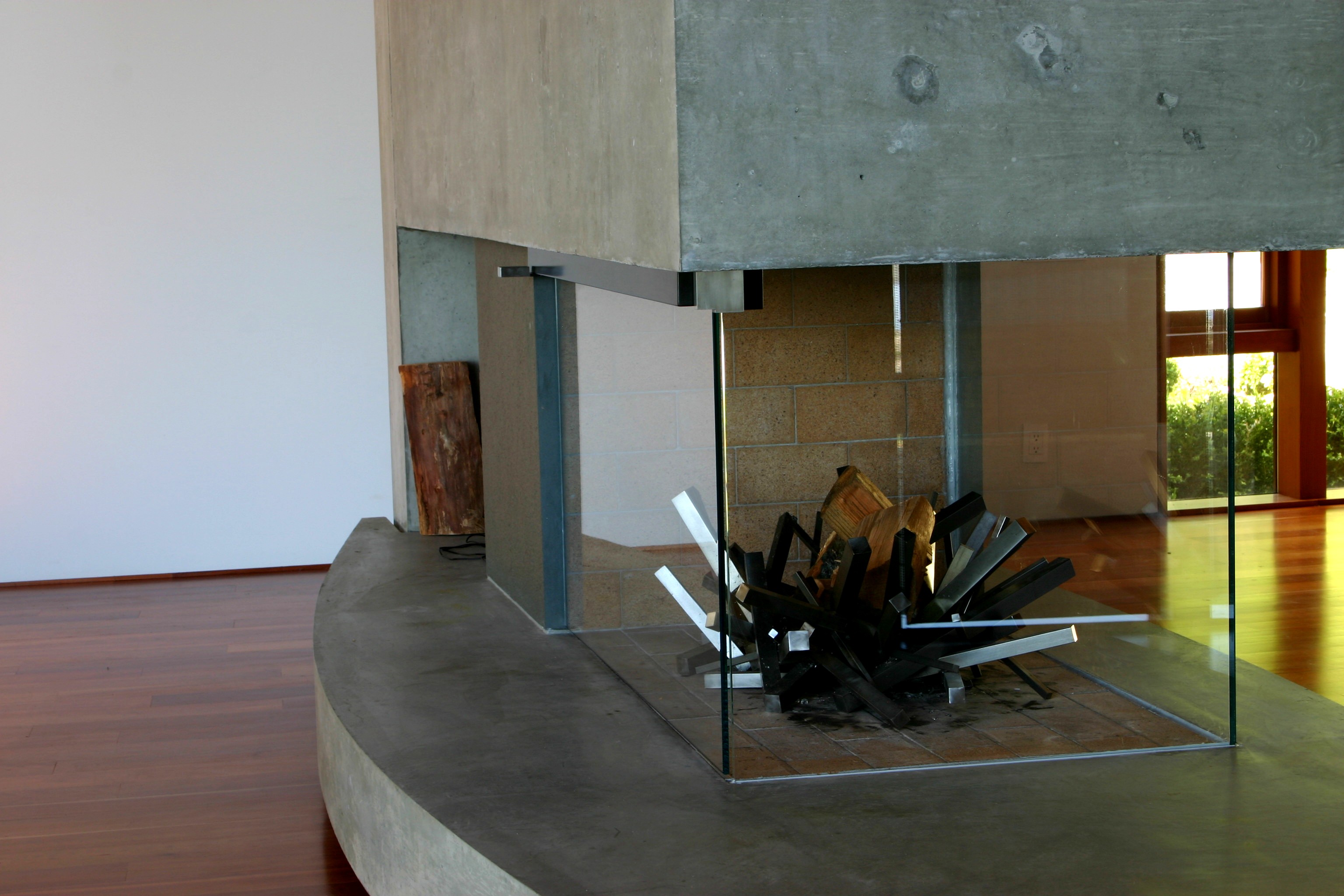 This crude looking fixture replicates the underside of the concrete slab sitting over the fireplace.