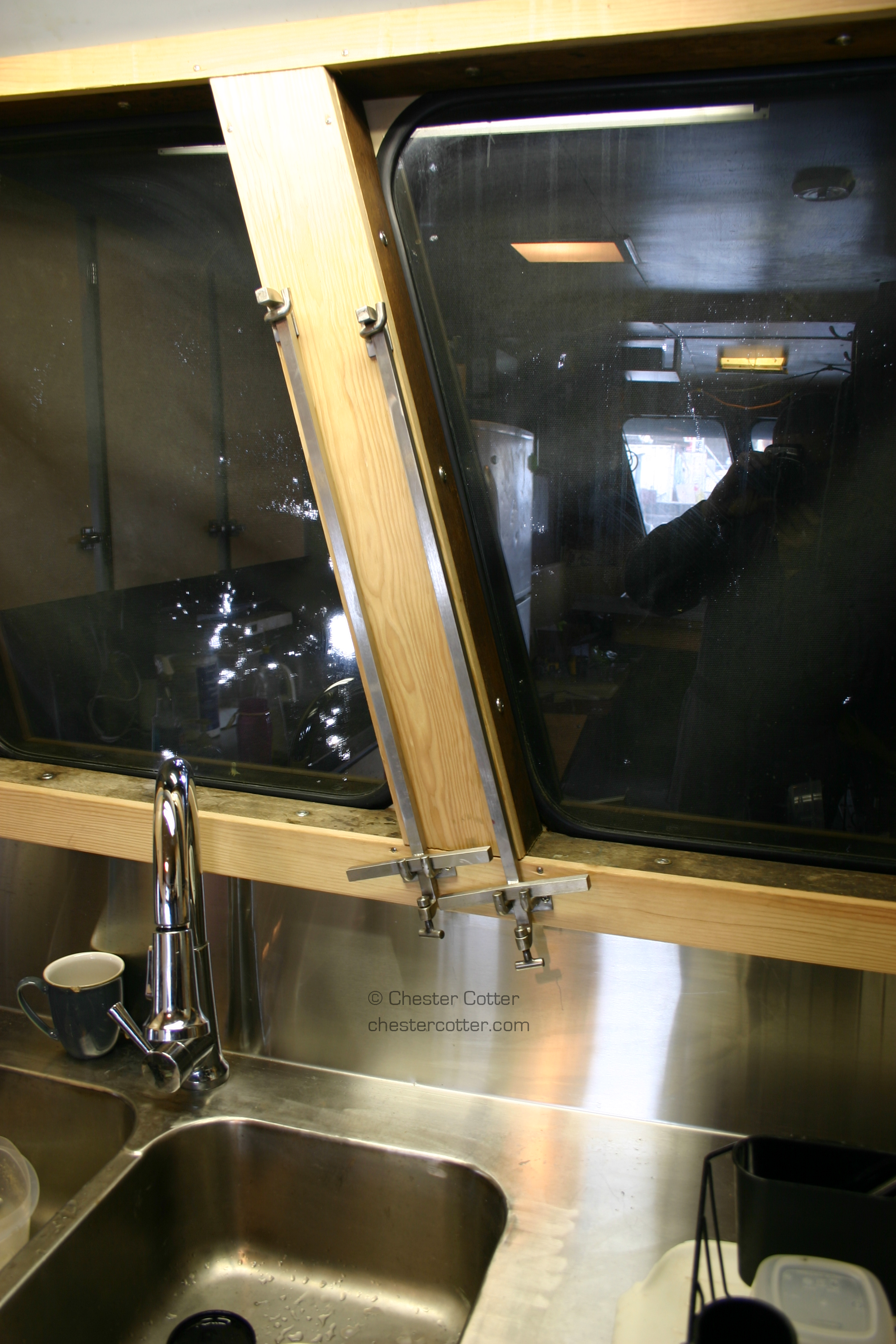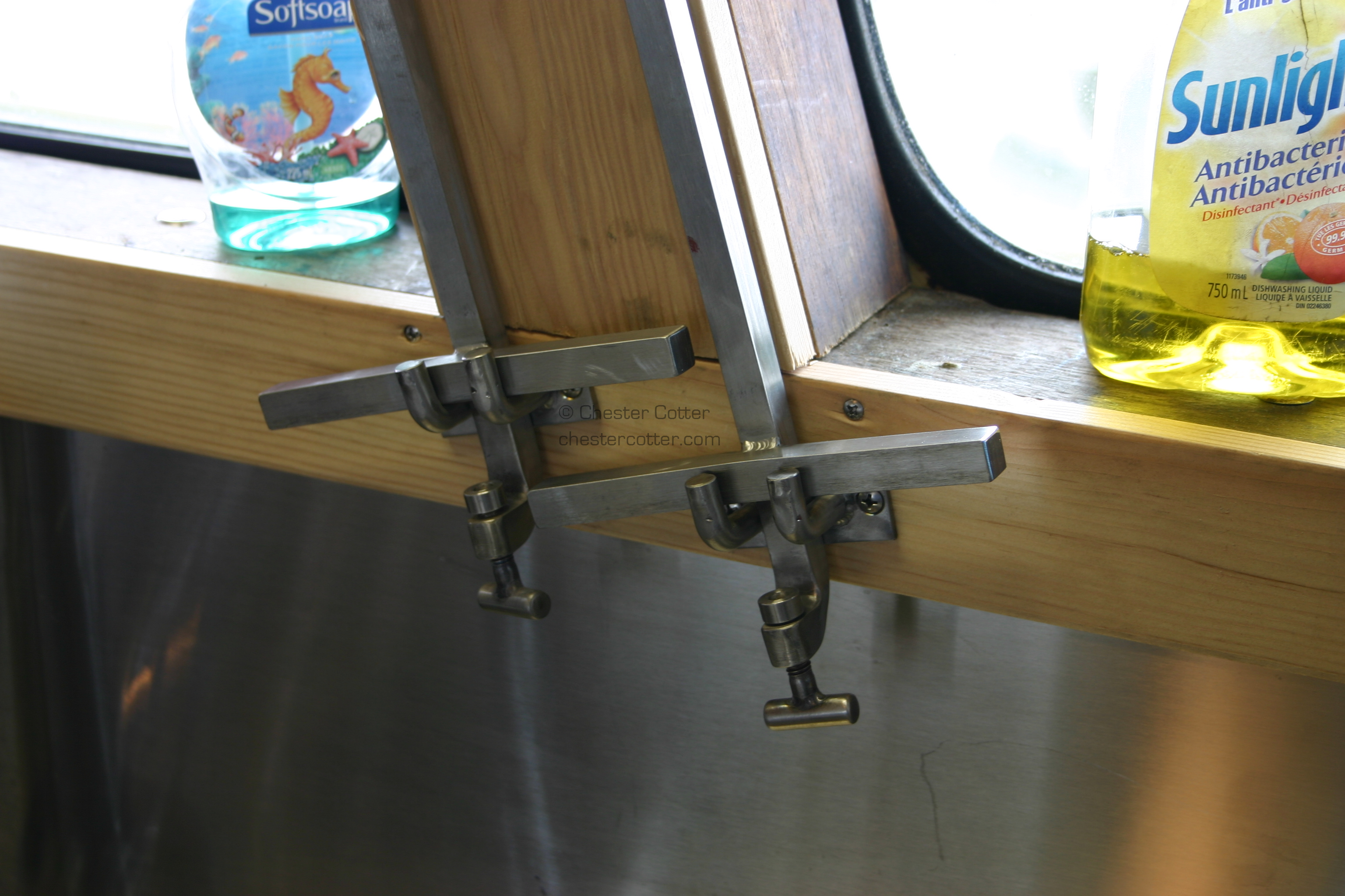 These bars clamp on to keep wares from sliding about in rough seas.